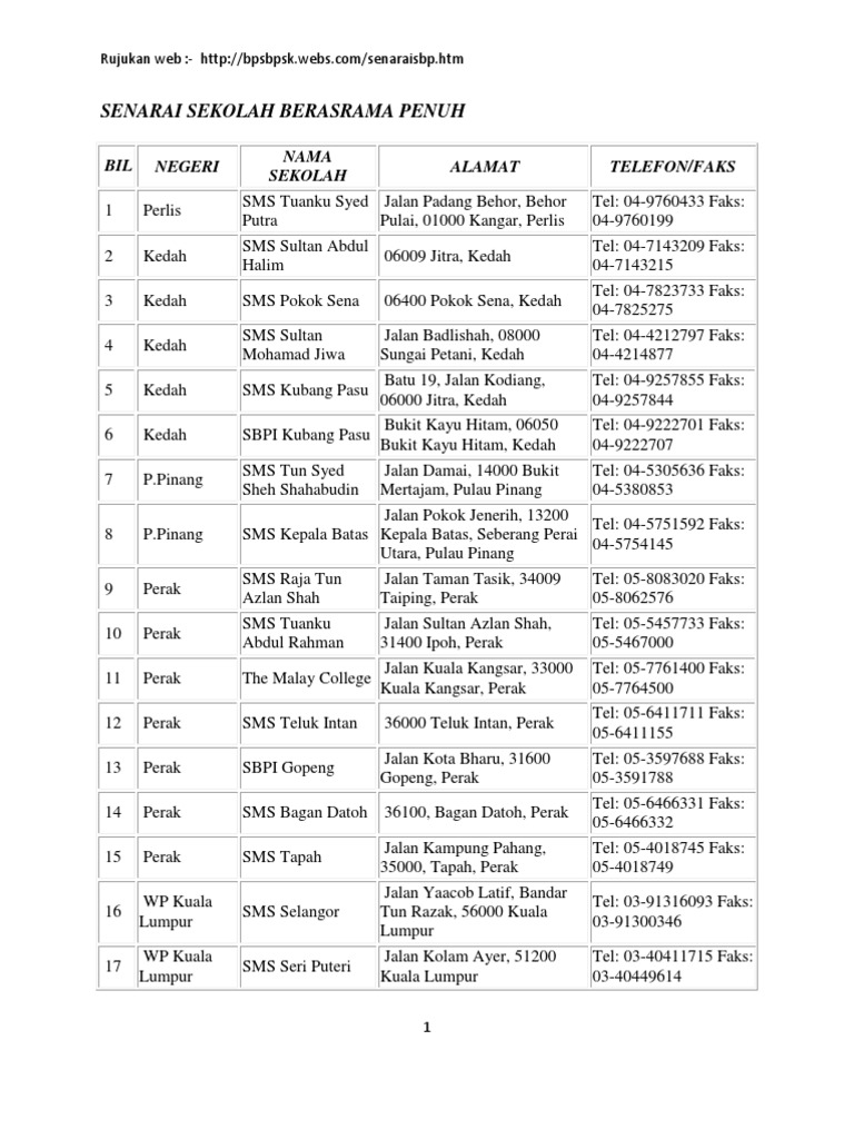 Senarai Sekolah Berasrama Penuh Sbp Pdf