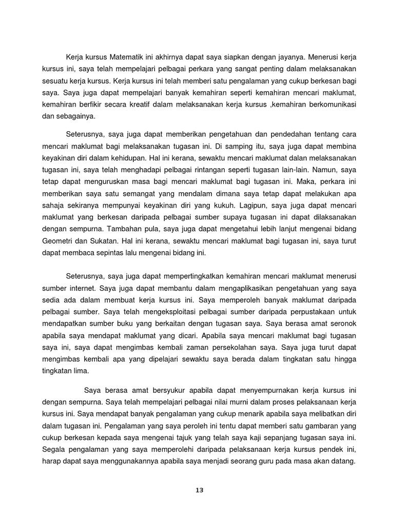 Objektif Penutup Refleksi Untuk Kerja Projek Matematik Tambahan Pdf